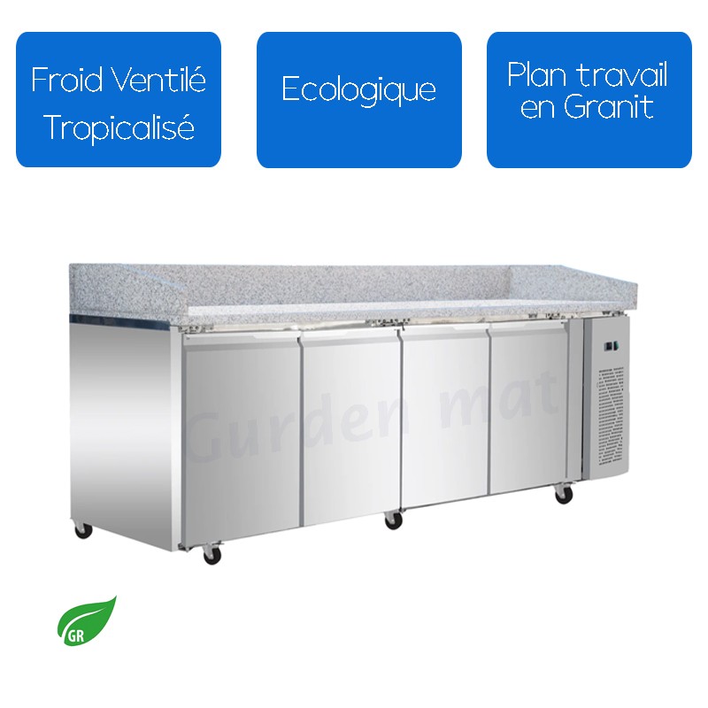 Taille : 140 x 70 cm - Plan Granit prof. 70 cm - Compartiment 6 bacs GN 1/4 ou 1/3